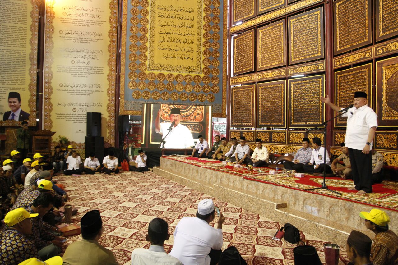 Gubernur Sumatera Selatan Alex Noerdin menghadiri silaturahmi dan mensosialisasikan Asian Games XVIII tahun 2018 kepada para tokoh agama, tokoh masyarakat, dan tokoh pemuda se-Kecamatan Gandus Kota Palembang di kediaman pengurus Bayt Al-Qur’an Akbar, Sofwatillah Mohzaib, di Jalan Amin Fauzi Soak Bujang, Selasa (10/4).