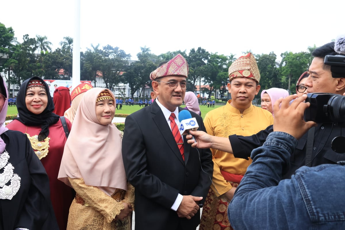 Kehadiran para pejabat tinggi dengan balutan busana tradisional menjadi simbol persatuan dan semangat membangun keluarga Indonesia yang berdaya dan mandiri.