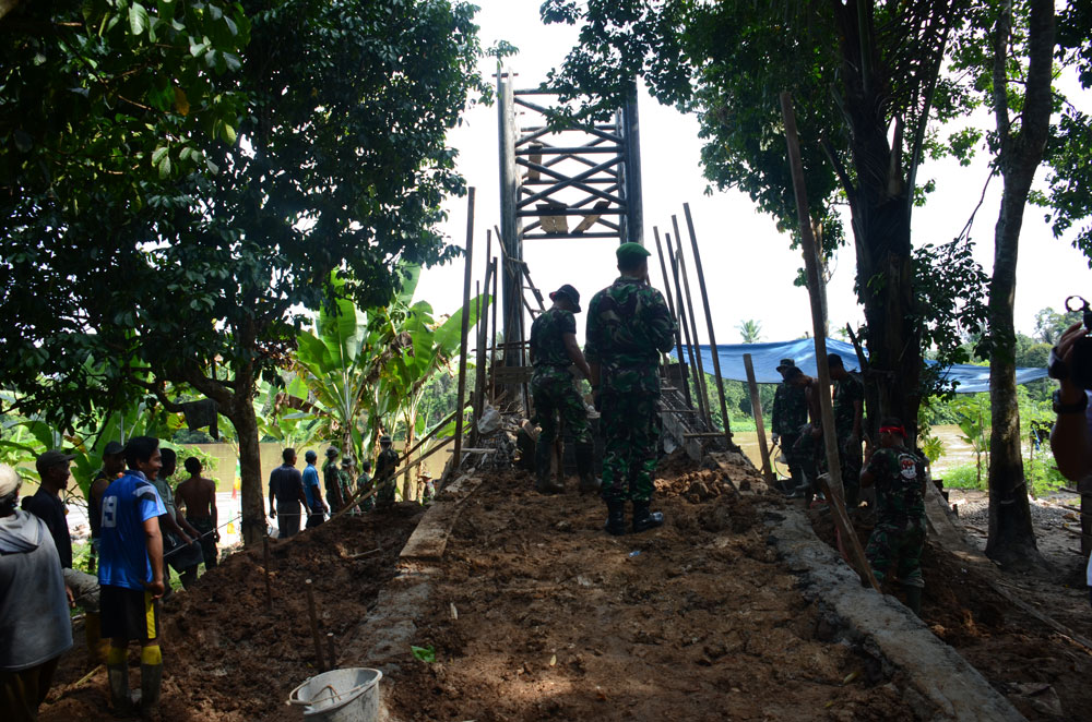 Selain itu Danton Satgas menyampaikan kendala yang dihadapi dalam pelaksanaan kegiatan fisik pembangunan jembatan gantung yang menghubungkan Desa Lubuk Rukam dengan Kampung 6 Desa Sumber Sari yaitu dihadapkan dengan cuaca hujan lebat diwilayah OKU yang mengakibatkan lokasi pembangunan terjadi banjir yang menghambat pendistribusian material bangunan, yang diperparah lagi dengan tidak dapat dilaluinya kendaraan akibat banjir dan lumpur di Kampung 6 Desa Sumber Sari sehingga distribusi bahan bangunan harus menggunakan perahu dari Desa Lubuk Rukam yang menghambat jalannya pembangunan.