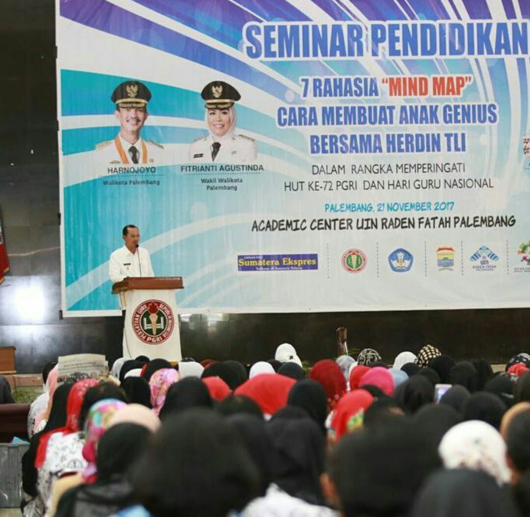 Demikian diutarakan Walikota Palembang H Harnojoyo pada pembukaan Seminar Tujuh Rahasia Mind Map Cara Membuat Anak Genius, Selasa (21/11), di Academic Center UIN Raden Fatah Palembang. Seminar diikuti ribuan guru PAUD dan SD se-Kota Palembang.
