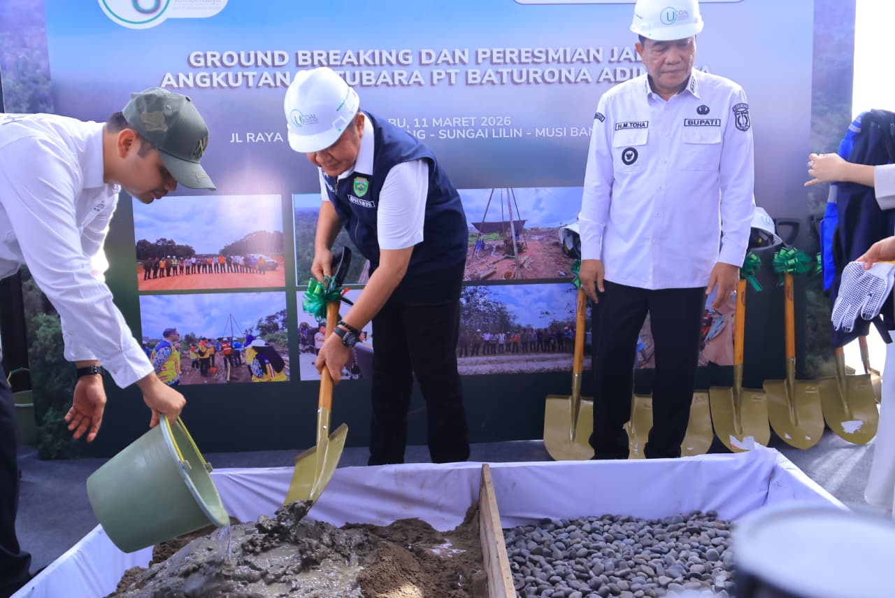 Musi Banyuasin, Halosumsel – Gubernur Sumatera Selatan (Sumsel) Dr. H. Herman Deru melakukan ground breaking pembangunan fly over sekaligus meresmikan jalan khusus angkutan batubara milik PT Baturona Adimulya di Jalan Palembang–Betung, Kabupaten Musi Banyuasin, Rabu (11/3/2026).