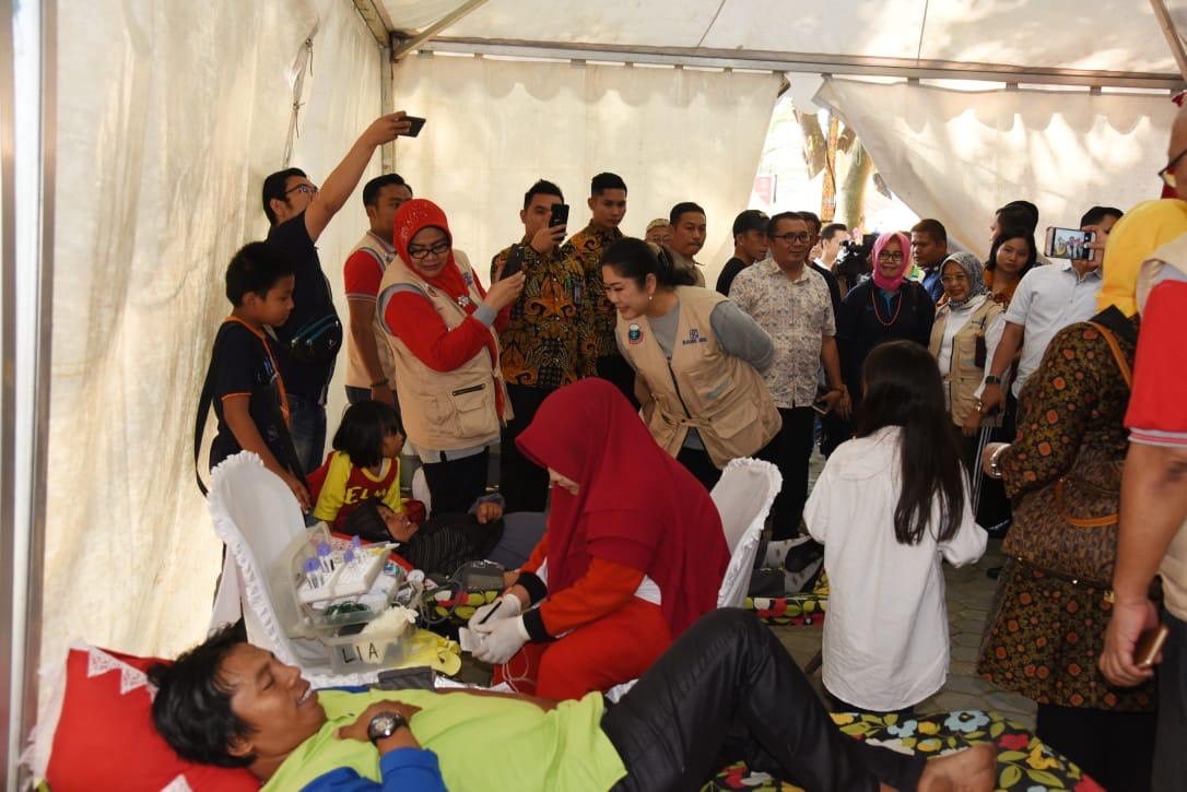 Didampingi Ketua PMI Sumsel, Hj Feby Deru, Gubernur Sumsel H. Herman Deru menghadiri acara bakti sosial Donor Darah yang digelar DPD Himpunan Alumni Institut Pertanian Bogor HA (IPB) Sumsel di kawasan Kambang Iwak, Minggu (1/9) pagi.