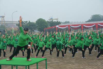 Ketua Persit KCK Koorcab Rem 044 Ny. Mia Kunto dan pengurus menghadiri acara olahraga bersama jajaran Persit KCK PD II Sriwijaya se-Garnizun Palembang di Stadion Garuda Sriwijaya KM.9 Jasdam II/Swj, Rabu (18/1/17).