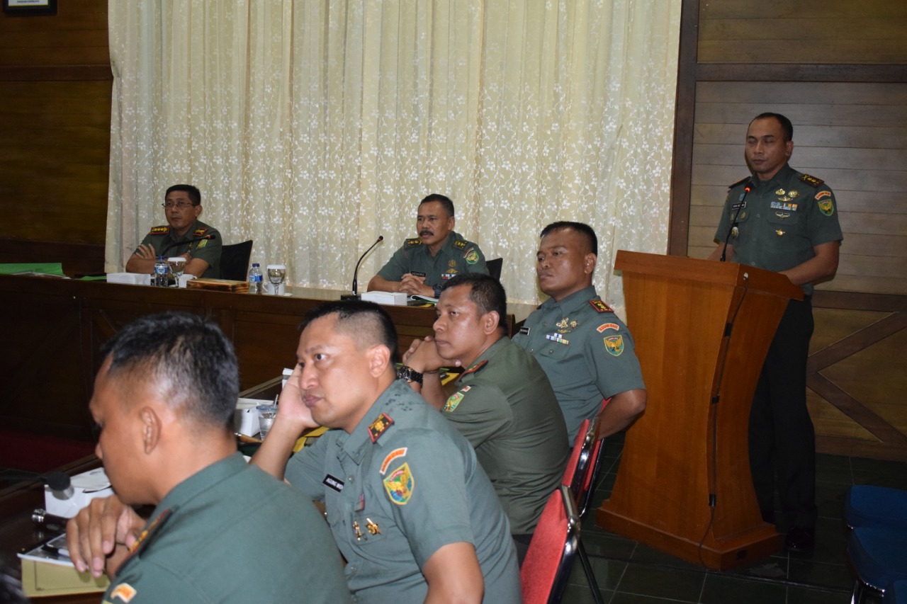 Komandan Kodim 0406/Musirawas Letkol Inf Muhamad A’an Setiawan, S.Sos. dan Komandan Kodim 0418/PalembangLetkol Inf Honi Havana, M.MDS. memaparkan rencana pelaksanaan kegiatan TNI Manunggal Membangun Desa (TMMD) ke-104 di wilayah Kodim masing-masing, kepada Komandan Korem 044/Gapo Kolonel Arh Sonny Septiono bertempat di Ruang Yudha Markas Korem Jln. Jenderal Sudirman KM. 4,5 Palembang, Jumat (15/2/2019).