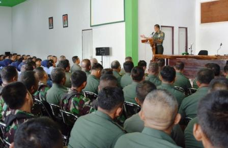 Komandan Korem 043/Garuda Hitam, Kolonel Kav Supriyatna, S.IP, MM, memberi pengarahan pada jam Komandan kepada Prajurit dan ASN Korem 043/Gatam beserta jajarannya, usai melaksanakan kegiatan upacara pengibaran bendera bulanan, Senin (19/09) bertempat di Gedung Graha Sudirman Makorem 043/Gatam.