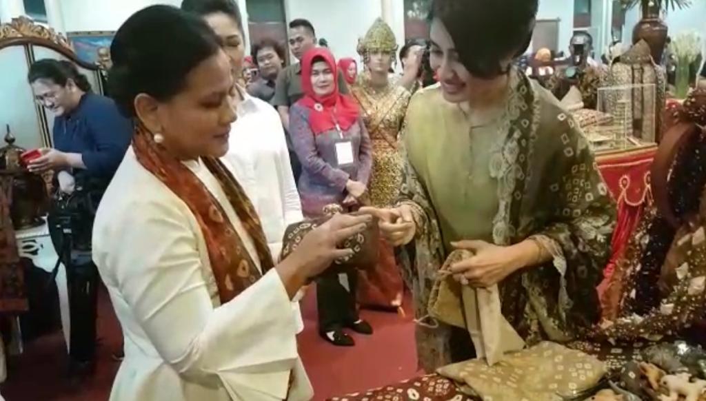 “Saya sangat terpukau dengan produk Gambo Muba ini. Karya orang lokal namun kualitasnya internasional,” ungkap Iriana saat berkunjung ke stand Kabupaten Muba yang disambut langsung Ketua TP PKK Muba Thia Yufada Dodi Reza.