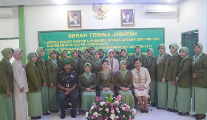 Ketua Persit Kartika Chandra Kirana Koorcab Rem 043/Gatam Ny. Dilla Joko Putranto , pimpin Serah Terima Jabatan Ketua Persit Kartika Chandra Kirana Cabang XXXI Kodim 0411/Lamteng. Bertempat di Aula Kantor PersitKorem 043/Gatam, Senin (01/02).
