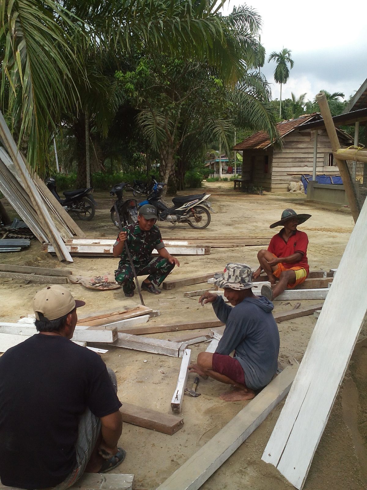 Babinsa Sri Agung Koramil 02/Tungkal Ulu Koptu Dariyun bersama masyarakat Desa Sri Agung Kec. Batang Asam Kab. Tanjab Barat melaksanakan kegiatan bakti TNI membangun Gardu Pos Kamling. Minggu (03/01/16).