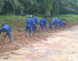 Sepertinya pihak perusahaan kepeduliannya terhadap ruas jalan itu hanya sekedar melakukan pembersihan paret pada aliran air ditepi jalannya saja dan itu suatu solusi yang dikeluhkan warga selama ini, karena kondisi ruas jalannya masih juga licin dan berkumpur jika datang hujan semacam ini dan datang kemarau disepanjang jalan itu masih berdebu.