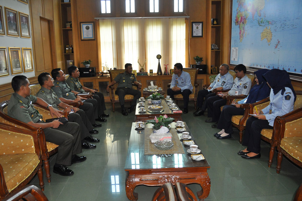 Pangdam II/Swj Mayjen TNI Purwadi Mukson, S.I.P., didampingi Kapendam II/Swj Kolonel Inf Syaepul Mukti Ginanjar, S.I.P., Asintel Kasdam II/Swj Kolonel Inf M. Nasrulloh Nasution, Aster Kasdam II/Swj Letkol Inf Dani Marthen Rihi dan Kakumdam II/Swj Letkol Chk Rudi Mulyadi, S.H., M.H., menerima kunjungan Kepala Kantor Wilayah Kementrian Hukum dan Hak Azazi Manusia (Kakanwil Kemenkumham) Provinsi Sumatera Selatan (Sumsel) bertempat di Ruang Tamu Pangdam Makodam II/Swj, Jalan. Jend. Sudirman Km. 2,5 Palembang, Rabu (30/3/2016).