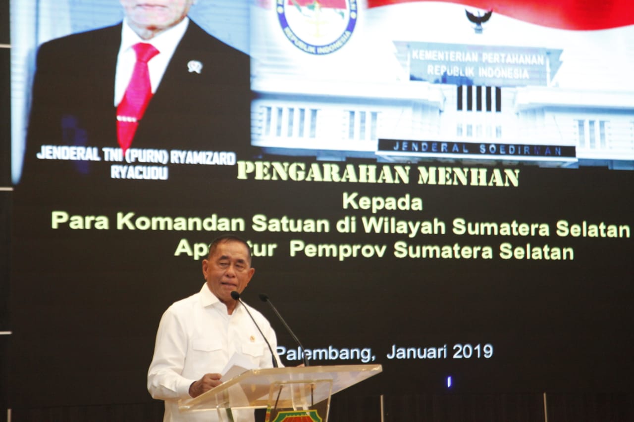 Menghadapi Pileg dan Pilpres 2019 mendatang, Menhan mengajak agar semua pejabat TNI dan Polri serta kepala daerah di Sumsel dapat menciptakan rasa aman dan kondusif.