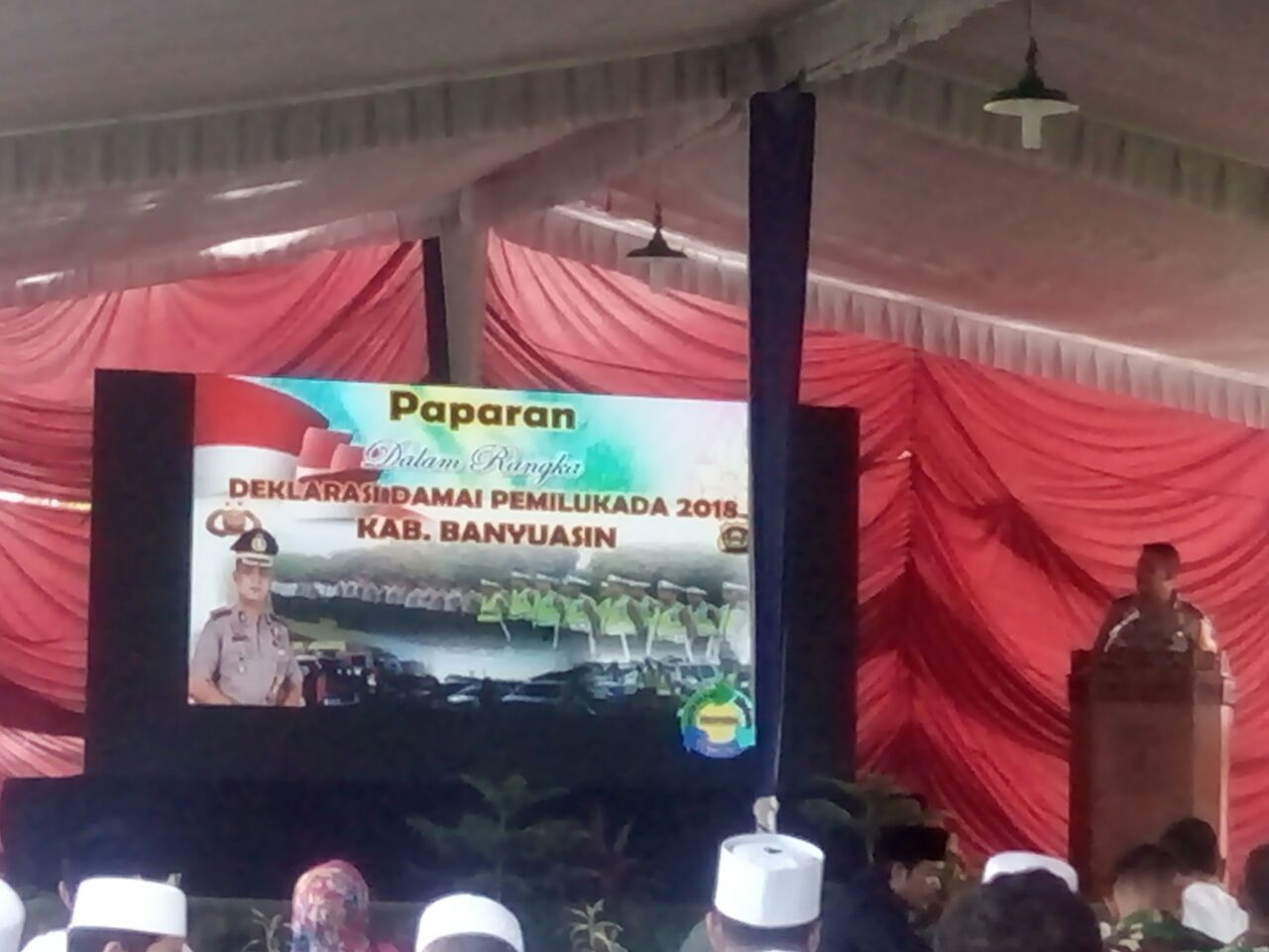 Hadir dalam acara itu hadir Bupati Banyuasin SA Supriono, Kasdim Banyuasin Mayor CZI Agus Supriayadi, Ketua Panwaslu Iswadi, Ketua KPU Banyuasin Dahri dan pendukung masing-masing Paslon.