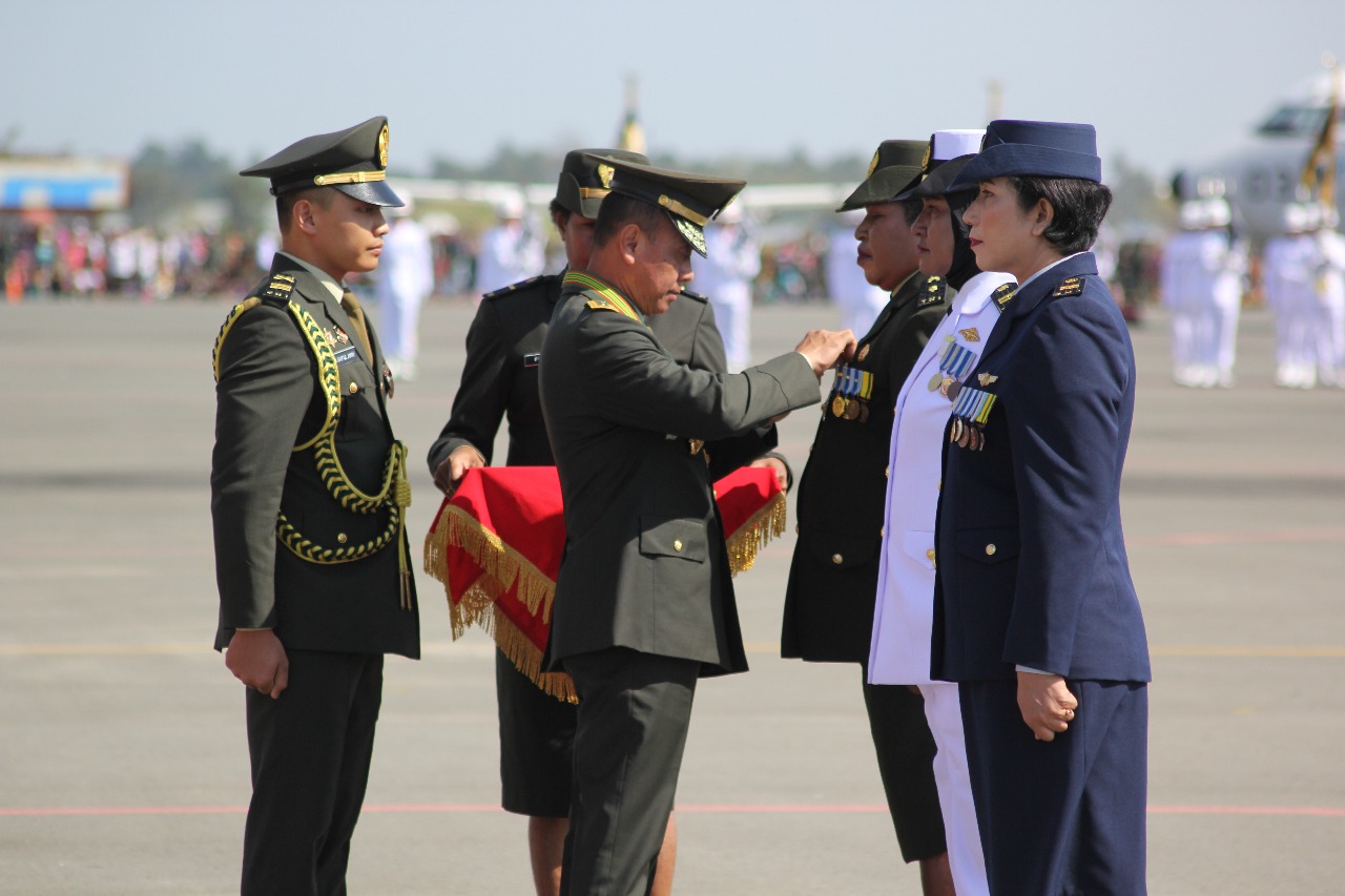 Kapala Staf Angkatan Darat (Kasad) Jenderal TNI Mulyono memimpin Upacara Peringatan HUT ke-73 Tentara Nasional Indonesia (TNI) di Bandara Mopah Kabupaten Merauke, Provinsi Papua, Rabu (5/10/2018). Peringatan HUT Ke-73 TNI yang digelar di Merauke ini bagi masyarakat Papua merupakan suatu hal yang luar biasa karena dipimpin oleh Kasad Jenderal TNI Mulyono dan dihadiri para petinggi TNI dari ketiga Matra.