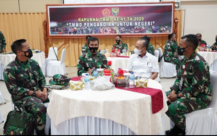 Ia juga menuturkan, keberadaan dan pelibatan masyarakat pada kegiatan fisik maupun non fisik , namun hal ini dapat diatasi dengan cara menyiapkan tempat tersendiri untuk ditempati para peserta dengan menggunakan Protkes dan Physical Distancing bagi prajurit serta masyarakat yang terlibat dalam kegiatan sehari-hari untuk memutus rantai penyebaran Covid-19.