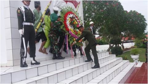 Dalam rangka HUT Ke-72 TNI, Korem 042/Gapu melaksanakan ziarah ke Taman Makam Pahlawan (TMP) jalan Jenderal Sudirman The Hok Jambi, bertindak sebagai Inspektur Upacara Danrem 042/Gapu Kolonel Inf Refrizal diwakili oleh Kasrem 042/Gapu Letkol Inf Yudi Ruskandar dan sebagai Komandan Upacara Mayor Arm Joneimir , Rabu (4/10).