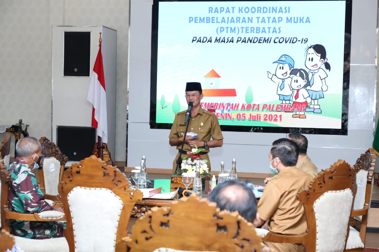 “Mengingat Covid-19 masih meningkat, hunian Rumah sakit sudah mencapai 70 persen. Kita sepakati untuk sekolah belum bisa dilakukan secara tatap muka,” kata Walikota Palembang H. Harnojoyo usai memimpin rapat persiapan sekolah tatap muka , Senin (5/7/2021).