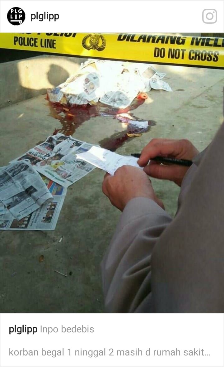 Peristiwa naas ini berawal saat korban berbonceng tiga melintasi lokasi kejadian. Dalam waktu bersamaan, rombongan pelaku yang diperkirakan sebanyak 18 orang, langsung mengayunkan senjata tajam yang dibekalinya ke arah kepala para korban. Dalam kondisi mandi darah, mereka mengasak sepeda motor milik korban.