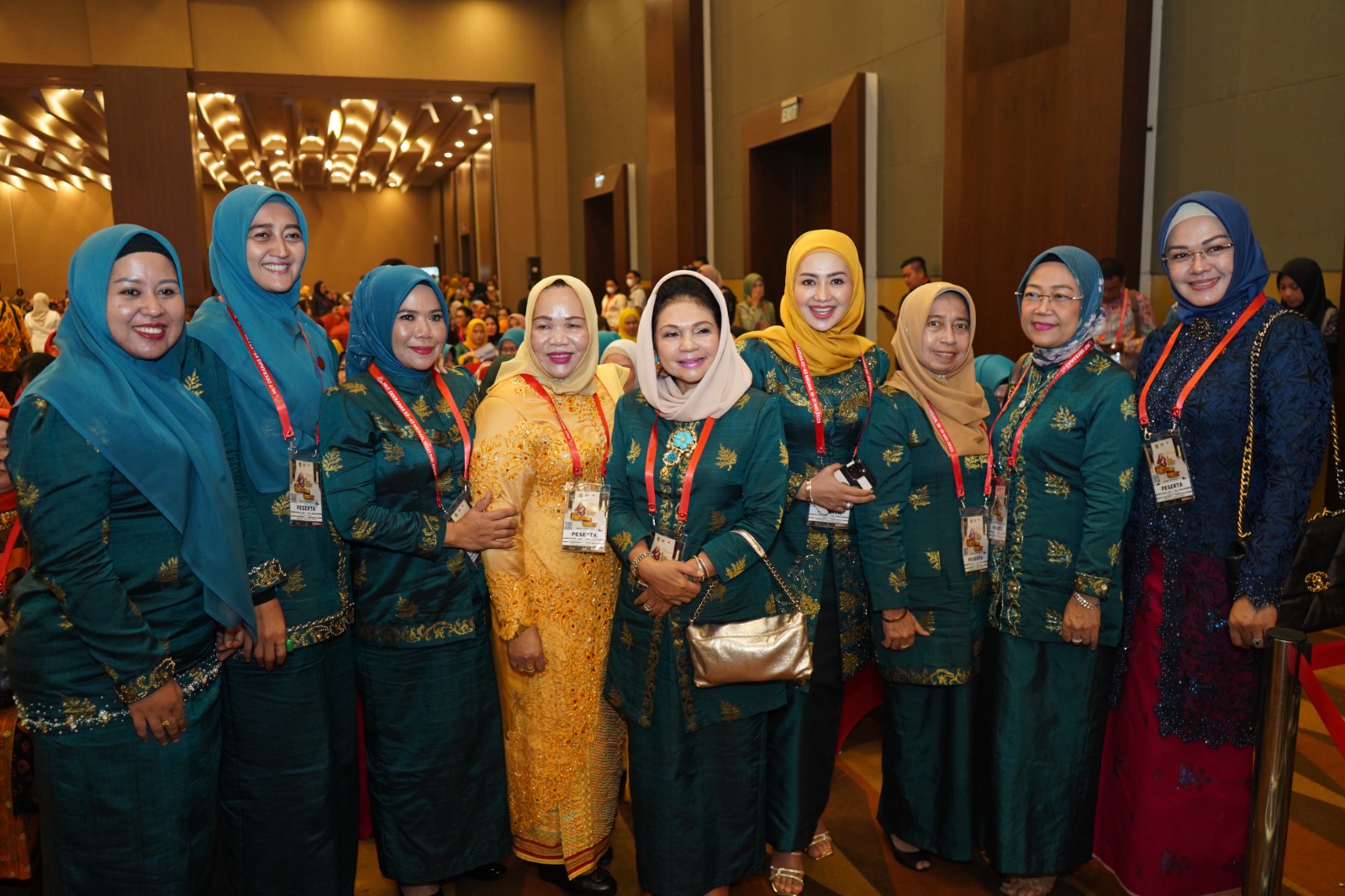 Asahan, Halosumsel – Ketua Dewan Kerajinan Nasional Daerah (Dekranasda) Kabupaten Asahan, Hj Titiek Sugiharti Surya, dengan mengenakan busana berbahan kain tenun Asahann tampil memukau saat menghadiri acara puncak HUT ke-43 Dewan Kerajinan Nasional (Dekranas) yang dilaksanakan di Kota Medan, Provinsi Sumatera Utara.