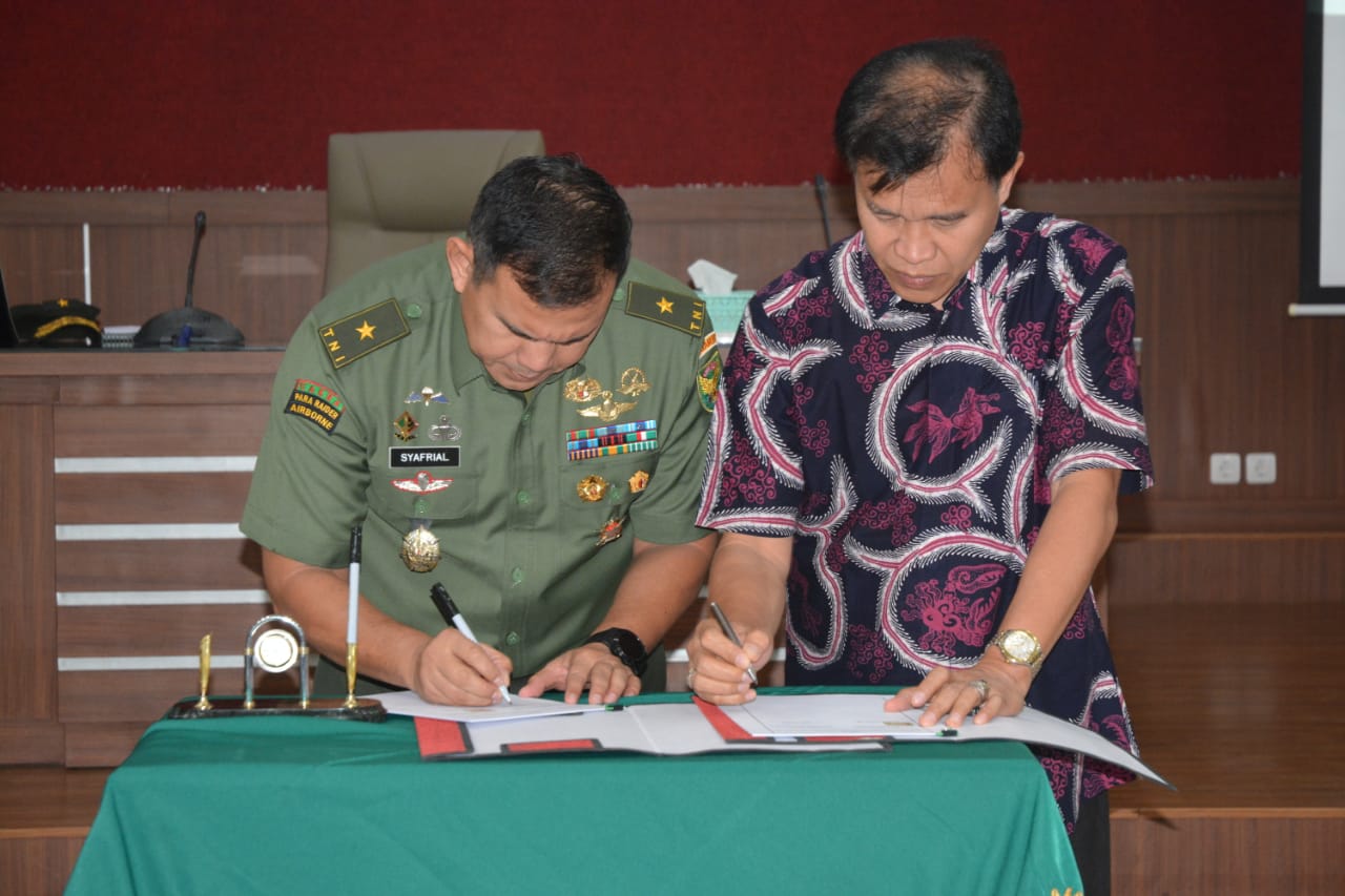 Rapat yang dihadiri Danrem 043/Gatam, Asrendam II/Swj, Aster Kasdam II/Swj, Katopdam II/Swj dan Kadistan Provinsi Lampung Ir. Edi Yanto, M.Si., ini ditandai dengan Penandatanganan Nota Kesepahaman (MoU) Perluasan Sawah Tahun 2019 antara Kodam II/Swj dengan Dinas Tanaman Pangan Hortikultura Provinsi Lampung.(rel)