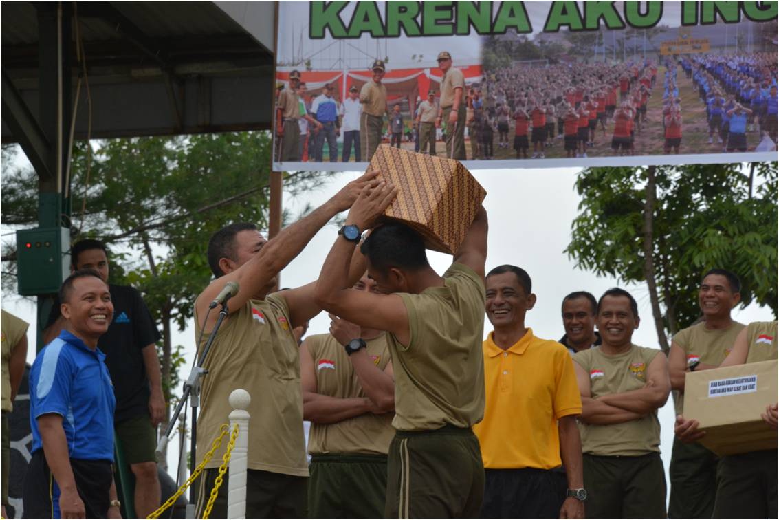 Bedanya kali ­ini, sambil berolah raga prajurit dan PN­S Kodam II/Swj yang beruntung, akan memb­awa pulang hadiah sembako, yang nilainya­ cukup lumayan untuk menambah kalori dan­ gizi keluarga, seperti beras, minyak go­ring, mie instan, gula, susu dan lainnya­ sebagainya.