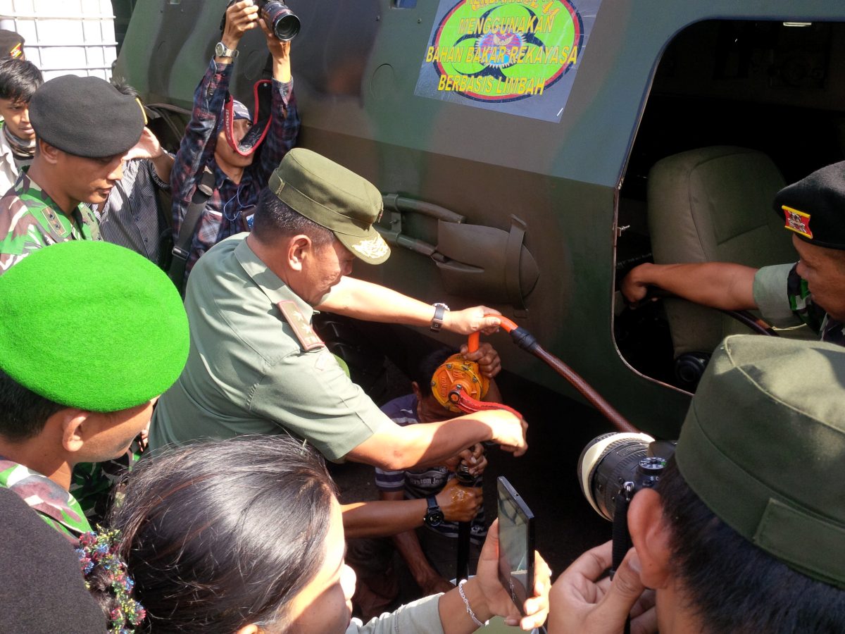 Setelah melaunching Pangdam didamping Danrem 044/ Gapo melakukan penempelan stiker bahan bakar hemat energi di mobil dinas kendaraan di lingkungan kodam ii sriwijay dan menyaksikan atraksi pemadaman api dengan menggunalkan nusantara Gapo 44,