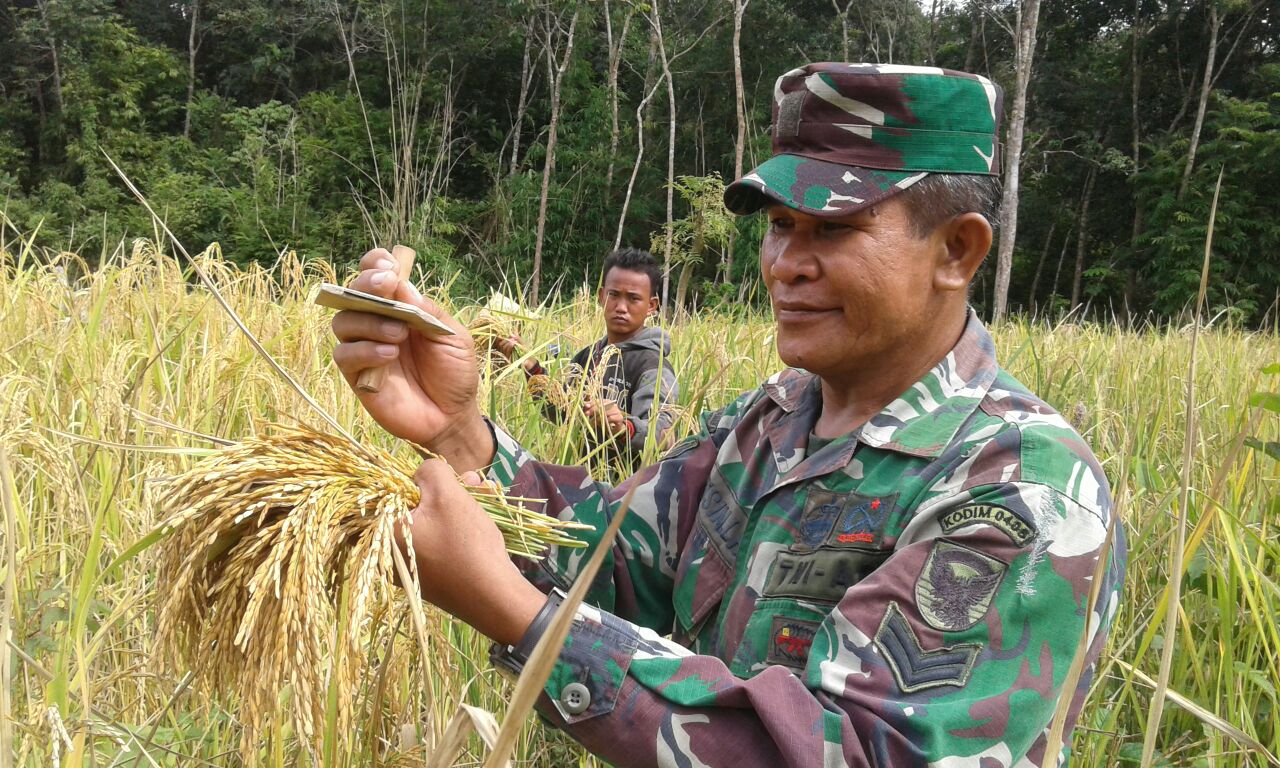 Upaya Koramil 01/Suro Langun, Kodim 0406­ dalam mensukseskan program Swasembada P­angan terus menerus ditingkatkan. Babins­a Koramil 01, Sertu Yusin Lumban Raja­ membantu pelaksanaan panen padi bersama­ Kelompok Tani ­Desa Lubuk Mas, Kabupaten Musi Rawas.­