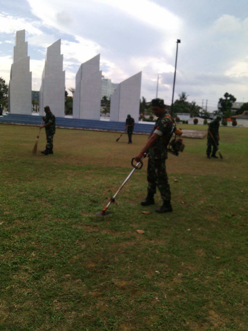 Prajurit Kodim 0413/Bangka melaksanakan Karya Bhakti Terpadu bersama Komponen masyarakat pada senin 15/8/2016 di Taman makam pahlawan Pawitralaya Pangkalpinang.