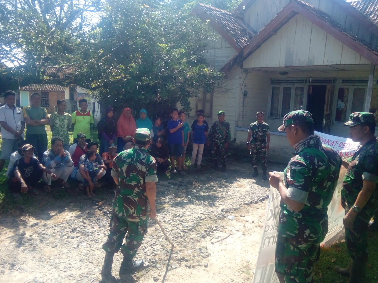 Komando Distrik Militer (Kodim) 0402/OKI melalui Komando Rayon Militer (Koramil) 402-05/Muara Kuang menggelar Sosialisasi Karhutbunla di Kelurahan Muara Kuang, Kecamatan Muara Kuang, Kabupaten Ogan Ilir (OI), Jum’at (10/5/2019).