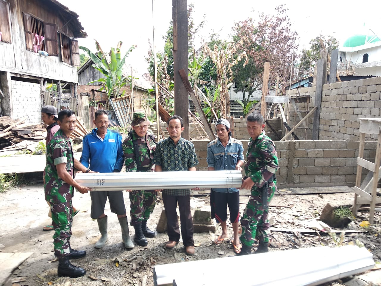 “Kami (TNI) turut prihatin dengan kondisi ibu Suminah yang telah menjadi korban kebakaran kemarin, saya mewakili Dandim hari ini menyerahkan bantuan berupa beberapa material bangunan yang sekiranya dapat dimanfaatkan sedemikian rupa,” ucap Danramil.