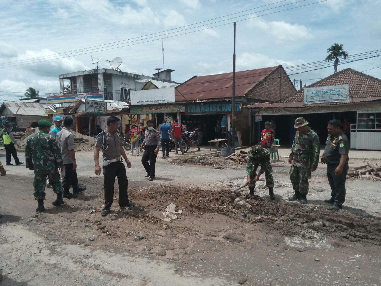 Penimbunan jalan rusak dan berlubang ini dilakukan dengan melaksanakan gotong royong menimbun jalan yang lubang menggunakan bahan pasir dan batu (Sirtu) yang ada disekitar jalan rusak dengan melibatkan seluruh anggota Koramil 401-05/Bayunglencir dibantu masyarakat sekitar.