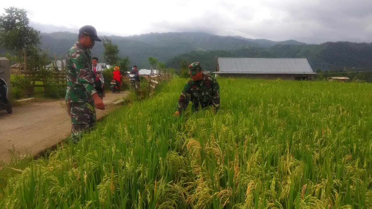 Bertempat di persawahan Desa Tanjung Alam Kec. Lintang Kanan Kab. Empat Lawang, tiga orang Babinsa Koramil 405-06/Muara Pinang Kodim 0405/Lahat melaksanakan pendampingan Upaya Khusus (Upsus) dengan panen padi di lahan sawah milik Bapak Masri (55) dari Kelompok Tani Suka Maju, Rabu (24/1/2018).