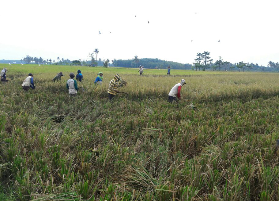 Bertempat di persawahan Desa Upang Mulia Kec. Makarti Kab. Banyuasin, Bintara Pembina Desa (Babinsa) Koramil 401-06/Sungsang Serda Andy Purnomo melaksanakan Upsus pendampingan panen padi jenis Mikongga Ciherang Jumbo dan IR 64 seluas 45 hektare, dengan hasil panen 5-6 ton gabah kering giling (GKG) per hektare, Senin (5/2/2018).