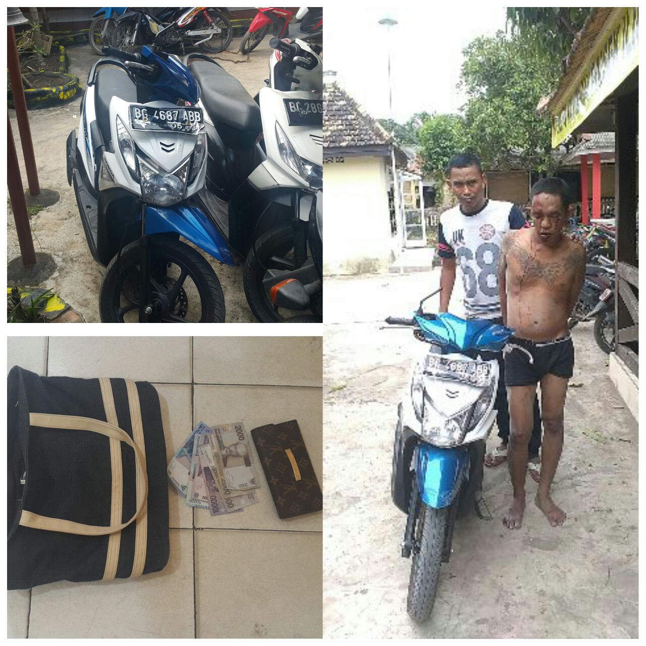 Dengan barang bukti berupa satu unit sepeda motor Honda Beat nopol BG 4687 ABB, satu tas sandang warna biru dan satu dompet coklat berisi uang tunai sebanyak Rp 150 ribu, tersangka yang kesehariannya berkerja sebagai buruh harian lepas ini langsung menjalani pemeriksaan intensif penyidik.