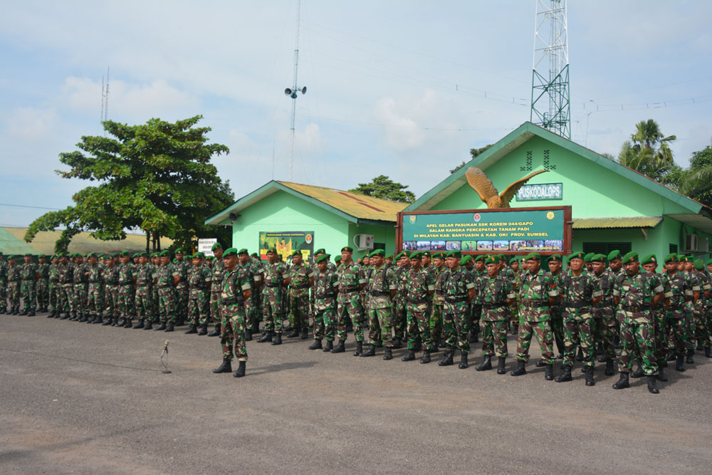 Dalam sambutannya Komandan Korem 044/Gapo menuturkan, saat ini TNI AngkatanDarad siap melaksanakan pendampingan Petani untuk membantu percepatan tanam padi, dan di wilayah Korem 044/Gapo yang menjadi target di wilayah Kab. OKI dan Kab. Banyuasin, dalam apel ini yang diikuti 220 Babinsa dari Kodim 0401/Muba dan Kodim 0402/OKI yang memiliki wilayah kedua Kabupaten tersebut sudah kita siagakan untuk mendampingi para petani dalam mencetak lahan persawahan yang diinginkan “terangnya”.