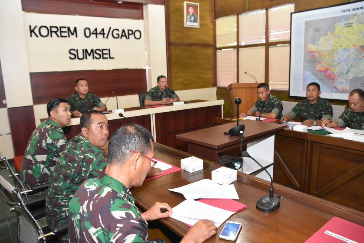 Kepala Seksi Personalia Korem 044/Garuda Dempo  Letnan Kolonel Inf Prabowo,yang diwakili oleh Perwira Seksi Personalia Mayor.Inf.Deri  memimpin Sidang Pankar (Panitia Karier) Jabatan, Bintara, Tamtama  jajaran Korem 044/Gapo untuk Triwulan III Tahun 2019, bertempat di Ruang Yudha Markas Korem Jln. Jenderal Sudirman KM. 4,5 Palembang, Selasa (27/8/2019).