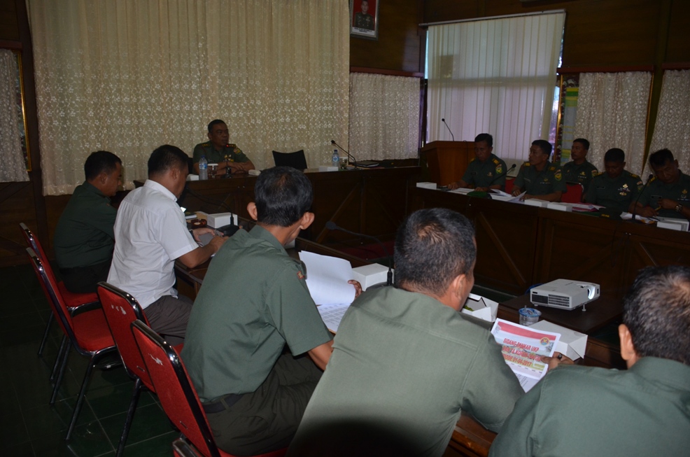 Kepala Staf Korem 044/Gapo Letnan Kolonel Inf Imanulhak memimpin sidang Pankar usul kenaikan pangkat (UKP) periode 1 April 2017 bertempat di Ruang Yudha Makorem 044/Gapo, Jum’at (19/8/16).