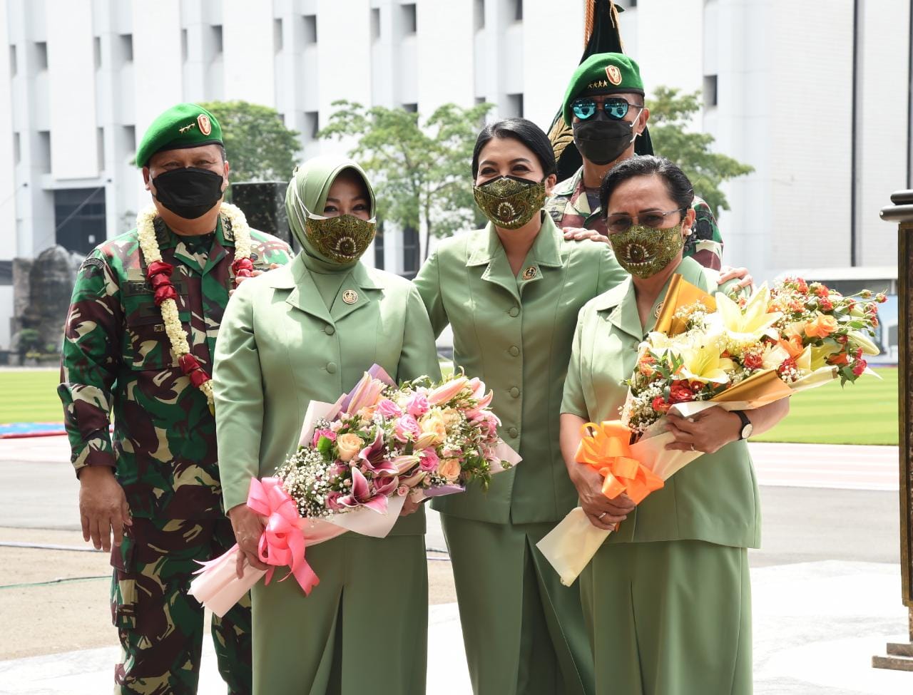 Disampaikan oleh Kadispenad, pada akhir acara Kasad Jenderal Andika Perkasa didampingi Ketua Umum Persit Kartika Chandra Kirana (KCK) Ibu Hetty Andika Perkasa melepas Ibu Mudi Herman Asaribab istri Almarhum Letjen TNI Herman Asaribab dan mantan Wakasad Letjen TNI (Purn) Moch Fachrudin beserta Ibu Santi Fachrudin yang telah memasuki masa purna tugas. (Dispenad)