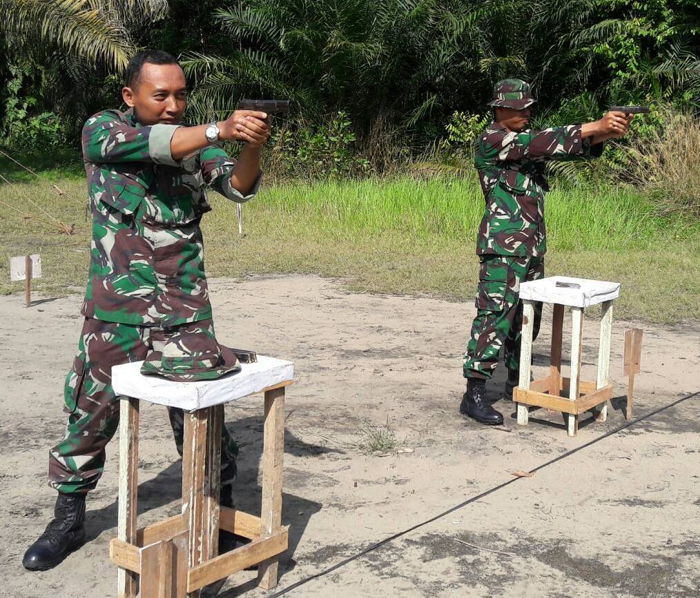 Hal ini dilakukan agar seluruh kegiatan latihan menembak dapat berjalan dengan lancar dan aman. Pada sesi latihan menembak kali ini, dilaksanakan dua macam latihan menembak yaitu menembak senjata pistol FN dan menembak senjata laras panjang M 16 A1. Latihan menembak pistol diperuntukkan bagi Perwira, dilaksanakan pada jarak 15 meter dengan sikap berdiri dua tangan, 3 butir peluru tembakan koreksi dan 10 butir peluru tembakan penilaian.