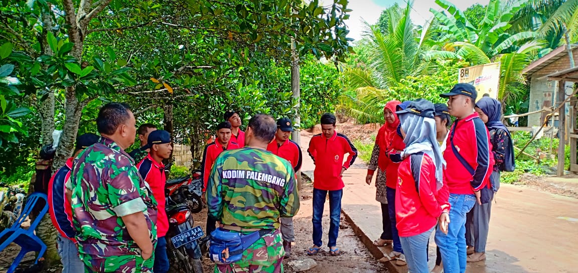 Sejumlah mahasiswa Universitas Palembang (Unpal) tampak antusias mengikuti kegiatan TMMD di Kelurahan Pulokerto, Palembang.