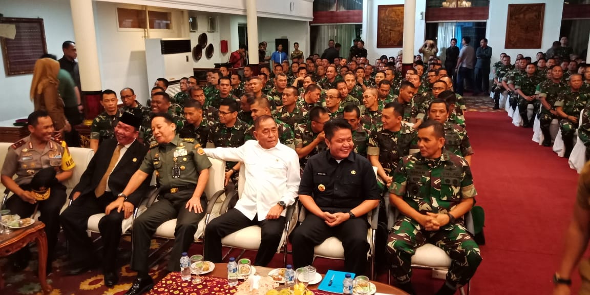 Gubernur Prov. SumselBpk. Herman Deru, S.H., M.M. dalam sambutannya menyampaikan, bahwa kita berkumpul disini untuk mendengarkan arahan dan bersilahturahmi dengan Menhan RI dalam rangka meningkatkan rasa persaudaraan antara pejabat di Pemerintah Pusat dan Pemerintah Daerah termasuk parapejabat TNI Polri agar tercipta sinergitas yang solid dalam rangka menjaga keamanan dan ketertiban di Wilayah Prov. Sumsel yang samapai saat ini masih tetap Zero Konflik.