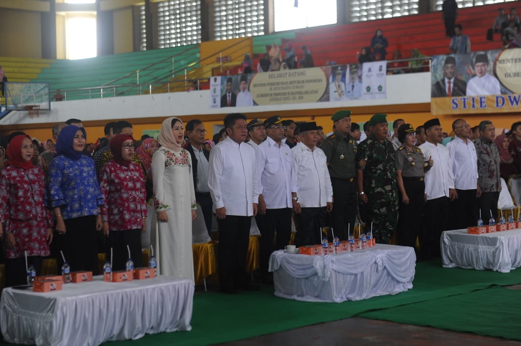 Menteri Perhubungan RI, H Budi Karya Sumadi dan Gubernur Sumsel H Herman Deru dan Bupati OKU Drs H Kuryana Aziz. Menjadi narasumber pada Dialog Nasional 39 Indonesia Maju yang digelar di Gedung Olahraga (GOR) Baturaja Kabupaten OKU, Sabtu (2/2).
