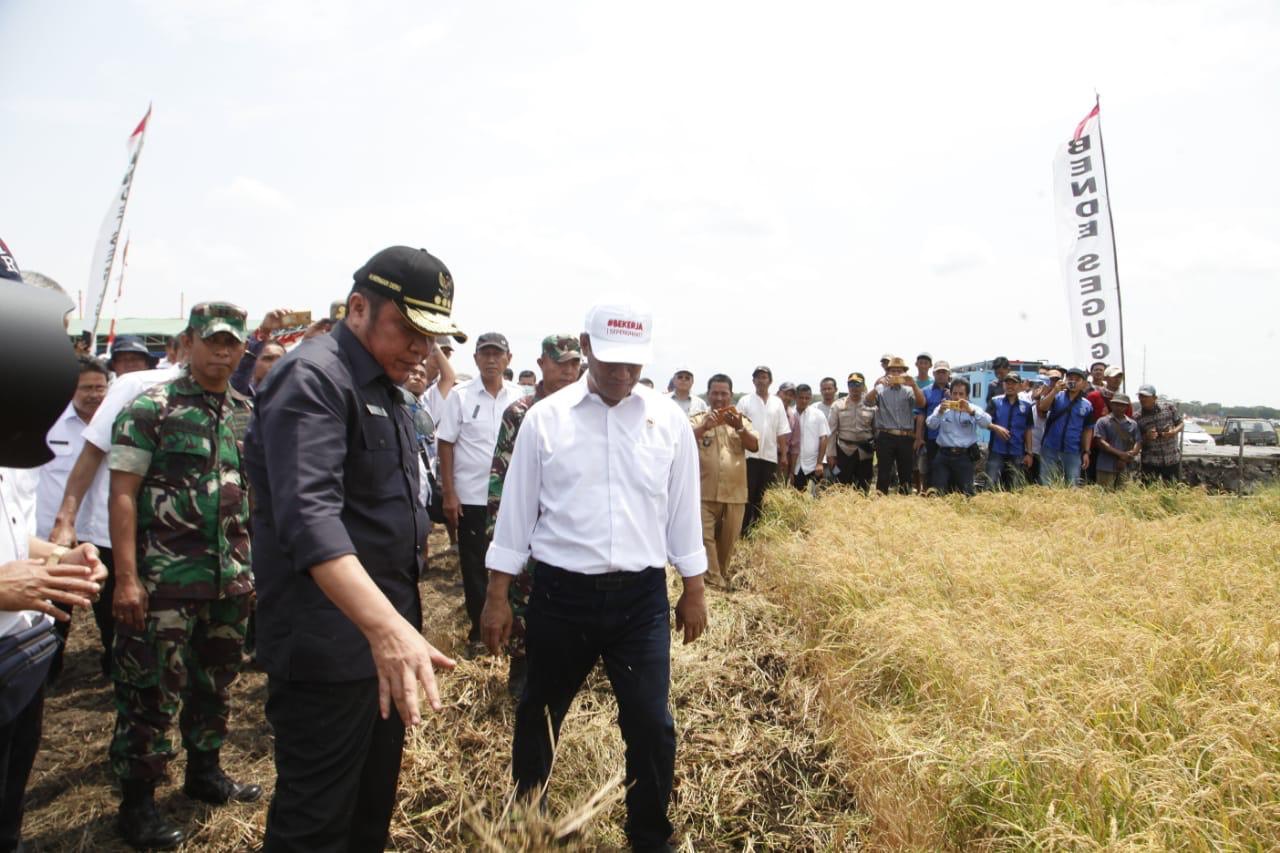 Usai membuka lahan di Muara Padang, Kabupaten Banyuasin, Mentan RI Andi Amran Sulaiman bersama Gubernur Sumsel Herman Deru, meninjau lokasi pertanian di Desa Tanjung Aur, Kecamatan Jejawi Kabupaten Ogan Komering Ilir (OKI), Rabu (28/8). Selain meninjau langsung mereka juga berdialog dengan petani dalam rangka kegiatan Optimalisasi Lahan (Opla) mendukung Program SERASI Sumsel 2019.