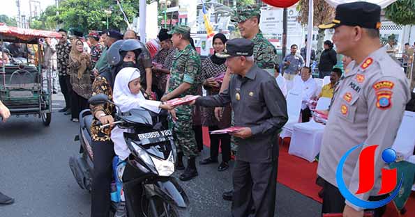 Asahan, Halosumsel.com – Bupati Kabupaten Asahan, H Surya BSc, beserta unsur Forkopimda lainnya membagi-bagikan 5000-an Bendera Merah Putih kepada masyarakat yang melintas di Jalan HOS. Cokroaminato Kisaran. Kegiatan yang dipusatkan di depan kantor Dinas Perpustakaan dan Arsip tersebur turut dihadiri Ketua MUI, Ketua FKUB, OPD, pimpinan etnis, tokoh agama dan tokoh masyarakat, Jumat (28/07/2023).