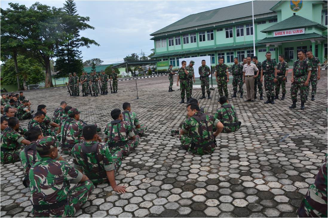 Dari hari pertama sampai dengan hari ke tiga  pelaksanaan minggu militer bulan ini, anggota Korem 041/Gamas melaksanakan latihan PBB/PPM, dilanjutkan dengan kegiatan lari jalanan, senam senjata Longmalap.  Kegiatan minggu militer tersebut diikuti oleh seluruh personel militer anggota Korem 041/Gamas. Latihan PBB/PPM merupakan bagian dari materi dasar peraturan baris-berbaris yang diharapkan akan mampu membentuk karakter dan mental prajurit supaya memiliki sikap yang tegas, beretika dan berdisiplin. Direncanakan pada hari-hari berikutnya tidak hanya latihan PBB/PPM, senam senjata dan Longmalap saja yang dilaksanakan, namun masih banyak lagi materi-materi dasar kemiliteran lain yang akan dilatihkan.