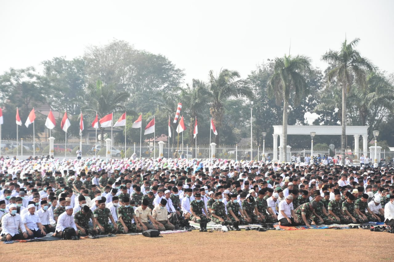 Ribuan warga Sumatera Selatan memadati halaman Griya Agung.Mereka tergabung dari berbagai lapisan masyarakat yang terdiri dari TNI, POLRI, Pegawai Pemerintahan Daerah,Mahasiswa,Pelajar dan warga sekitar Griya Agung.Korem 044/Gapo juga turut serta mengirimkan personilnya baik Militer dan Pns pada kegiatan ini.Pada kesempatan itu PLH Korem 044/Gapo Letkol.Inf.Imam Priharso.S.H,M.H selaku yang tertua perwakilan dari korem 044/Gapo mengatakan, tujuan dari kegiatan dimaksud adalah, memohon kepada Tuhan supaya segera diturunkan hujan, karena keadaan kemarau seperti ini semakin parah didaerah kita ini, sehingga kondisi lingkungan sekitar kita sudah terasa tidak nyaman,kabut asap terlihat memasuki kota Palembang diwaktu malam dam subuh.Sangat tidak baik bagi pernapasan kita,dan dimungkinkan bisa terkena penyakit Ispa.Bahaya Ispa sangat rentan dalam situasi seperti ini.Semoga doa kita dikabulkan oleh Allah SWT dan Allah menurunkan hujan bagi kita,biar bumi Sriwijaya ini kelihatan terang tidak tertutup awan lagi.Amin Ya Robbal AL Amin….tandasnya.
