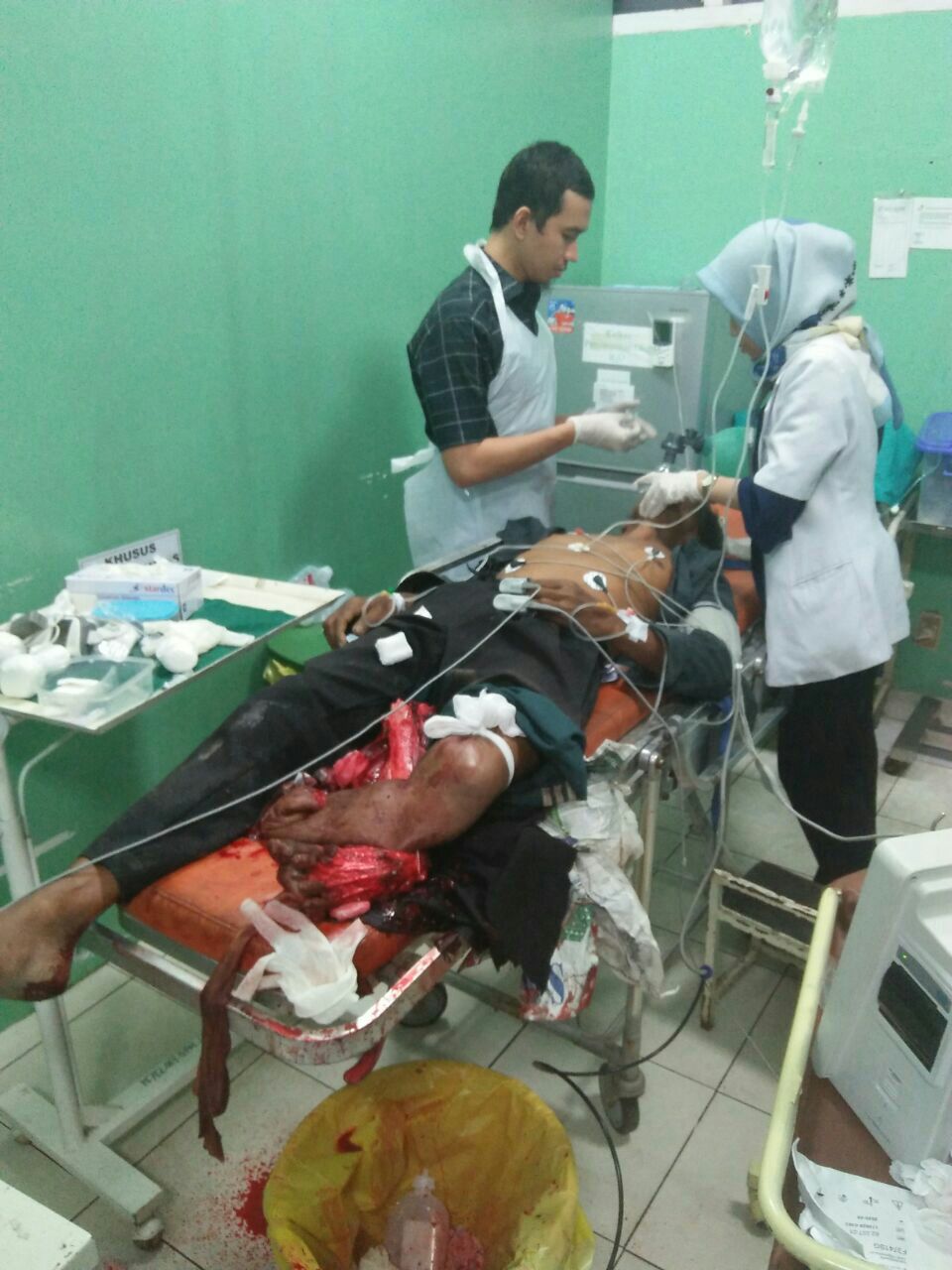 Sukirno (60) terpaksa dirujuk ke kamar jenazah RSMH Palembang, setelah sempat dibawa ke rumah sakit Pusri. Betapa tidak, warga Jalan Penyaringan RT 06 RW 02 Kelurahan 3 Ilir Kecamatan IT II mengalami luka parah dibagian kaki kiri (remuk_red) setelah dilindas mobil Mitsubishi Truck Tanki nopol BG-8393-JB, yang dikemudikan Hendriansah (30) warga Dusun 1 Desa Tanjung Baru Kecamatan Indralaya Utara Kabupaten Ogan Ilir, Sabtu (25/8) pukul 11.00 WIB.