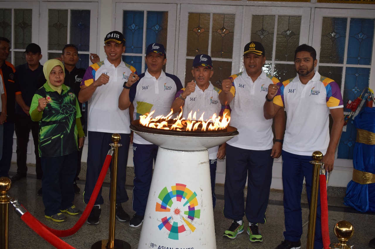 Api yang menjadi penanda event olahraga bergengsi se Asia setiap empat tahun itu, sehari sebelumnya telah diarak keliling Kota Palembang pada Sabtu (4/8/2018) dan malamnya diinapkan di Kota Palembang, tepatnya di Rumah Dinas (Rudin) Walikota Palembang, Usai menginap semalam, api tersebut akan diarak melewati beberapa Kabupaten/Kota di Provinsi Sumatera Selatan diantaranya Kab. Banyuasin, Kab. Musi Banyuasin, Kab. Penukal Abab Lematang Ilir (PALI), Kota Prabumulih, Kab. Ogan Ilir (OI) dan Kab. Ogan Komering Ilir (OKI) serta akan berlanjut ke Kab. Tulang Bawang Lampung.