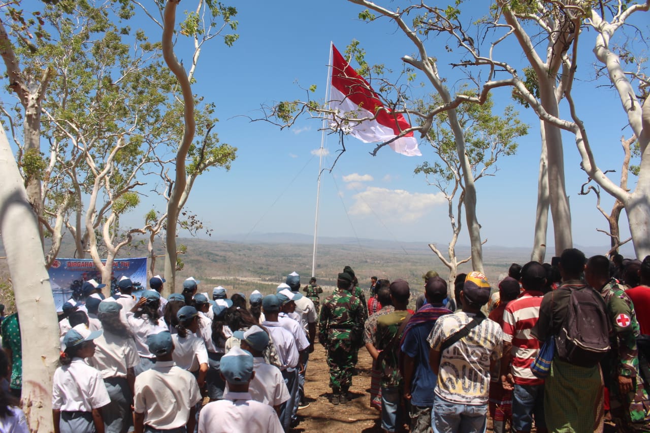 Di ungkapkan Dansatgas, kegiatan Pengibaran bendera Merah Putih raksasa yang berukuran 6X3 meter di ketinggian 857Mdpl Puncak Manuaman, yang dipimpin langsung oleh Kapten Inf Riduan selaku Wadan Satgas Pamtas Yonif Raider 142/KJ.