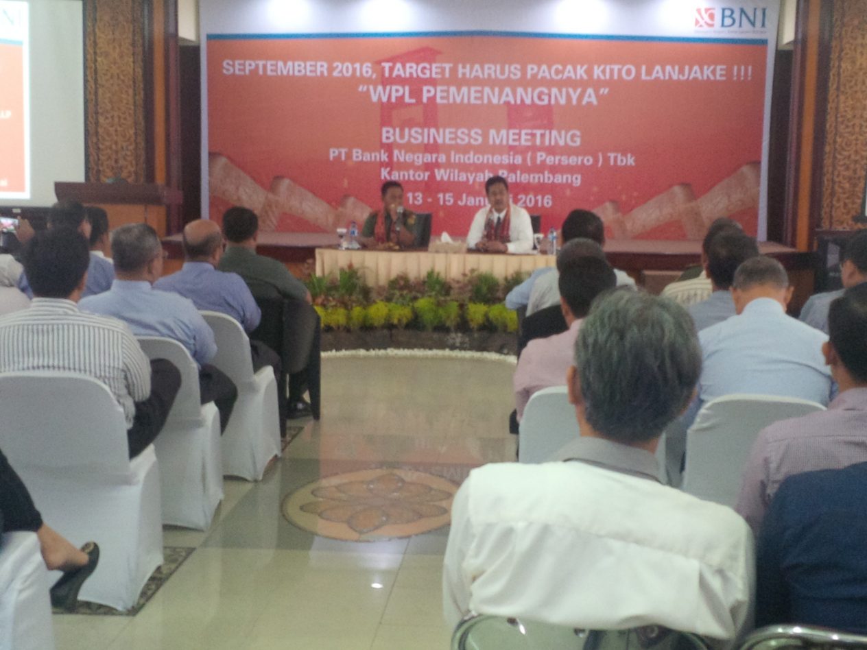 Tampak hadir Kakawanil BNI Cabang Palembang, Asterdam Letkol Inf Danny martin, Wakapendam letkol Inf Paiman, Para peserta Business Meeting, Pimpinan BNI Se Sumbagsel,Pimpinan Cabang BNI seluruh jajaran dan staf karyawan