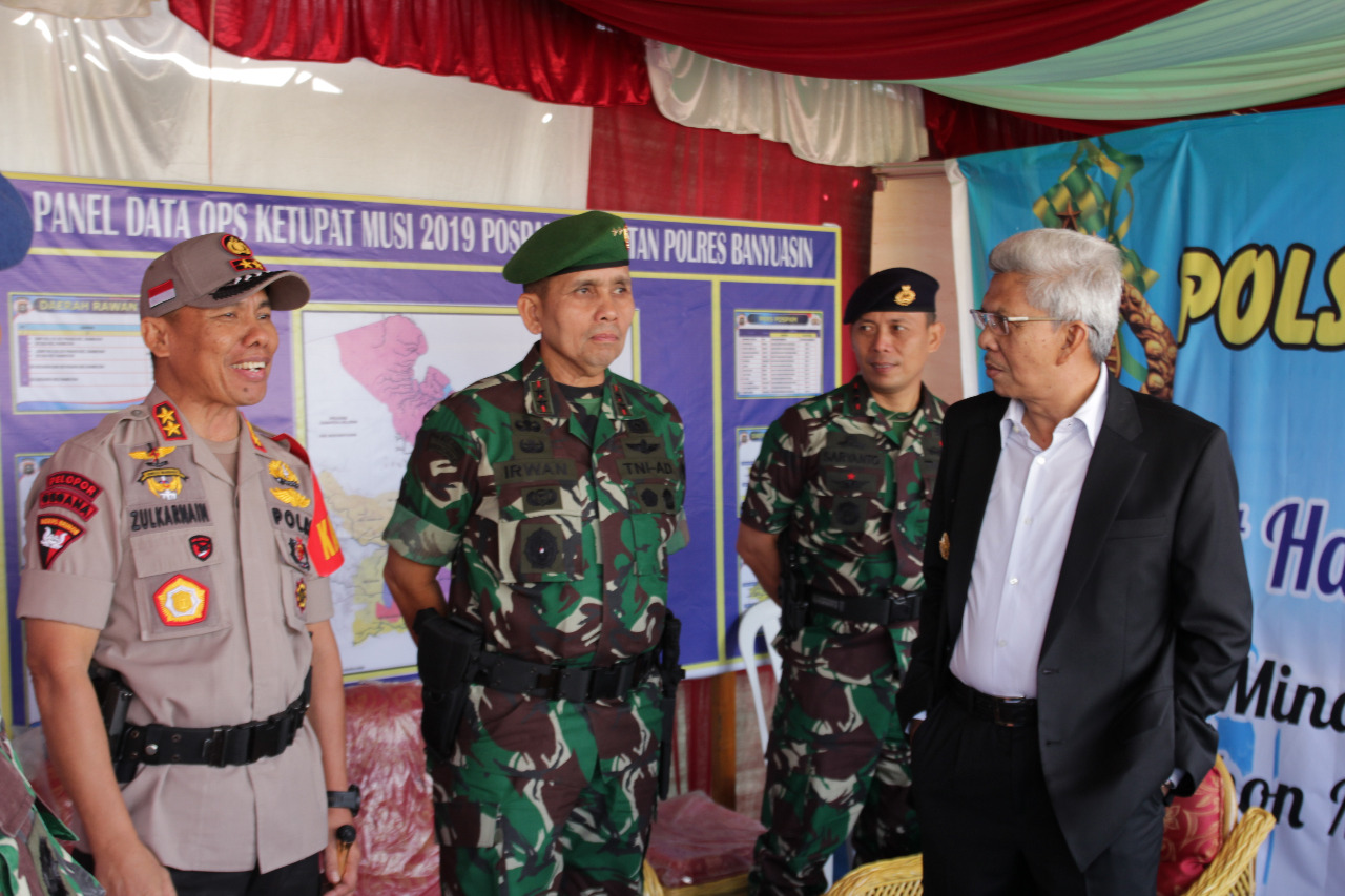 Usai mengikuti upacara Hari Lahir Pancasila yang diselenggarakan di Kantor Gubernur Sumsel Griya Agung Palembang, Sabtu (1/6/2019), Pangdam II/Swj dan Kapolda Sumsel beserta Wakil Gubernur Sumsel langsung melakukan peninjauan Pos Pengamanan Terpadu Ops Ketupat Musi 2019 Polresta Palembang dekat Monpera depan Masjid Agung Palembang.